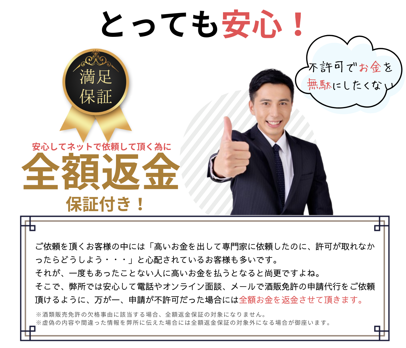 全額返金保証がついているので、万が一許可が取得できなかった場合は、全額ご返金させていただきます。