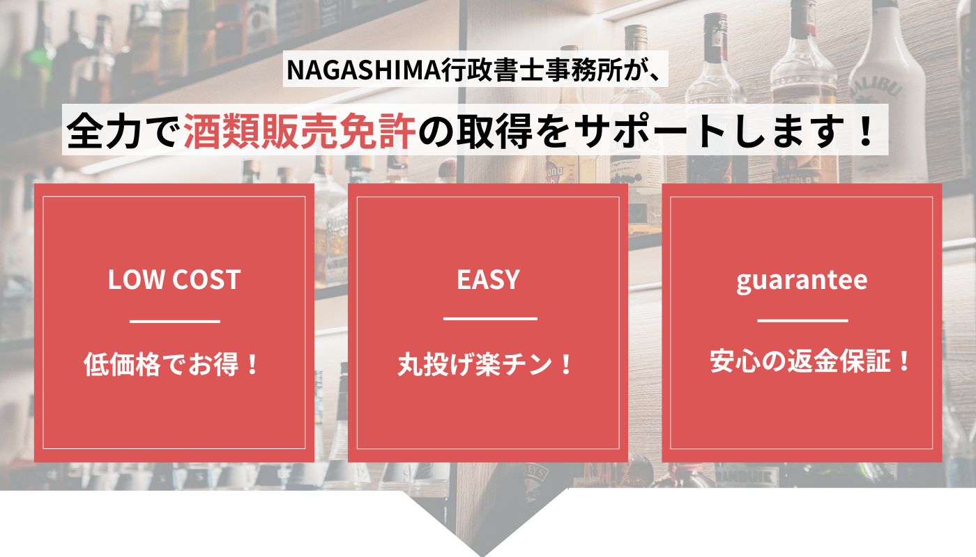 今すぐ酒類販売免許専門のNAGASHIMA行政書士事務所にご相談ください。