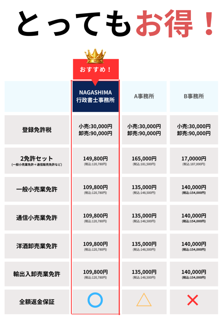 サービスの内容やサポート体制、料金については、ぜひ他の行政書士事務所と比べてご検討ください。
